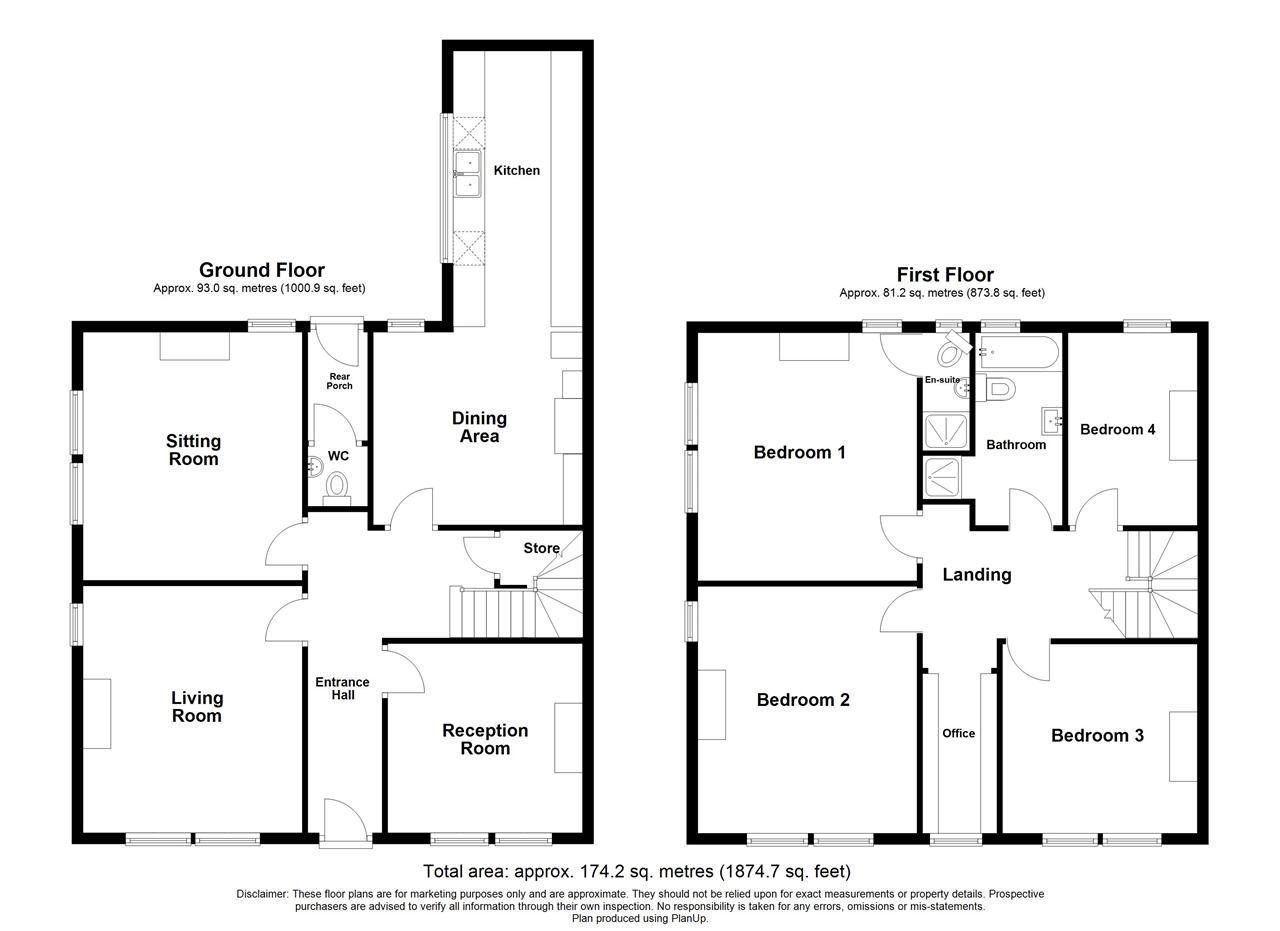 Balustrade staircase leads from the entrance hall to the landing which provides access to all first floor rooms including four generous size bedrooms, including master bedroom with ensuite, stylish family bathroom with four piece suite and office.