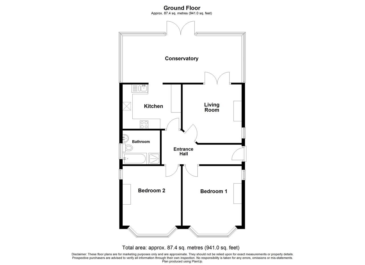 The accommodation comprises Entrance Hall, Lounge, Kitchen, Conservatory over-looking the rear garden, Two Double Bedrooms and Bathroom.